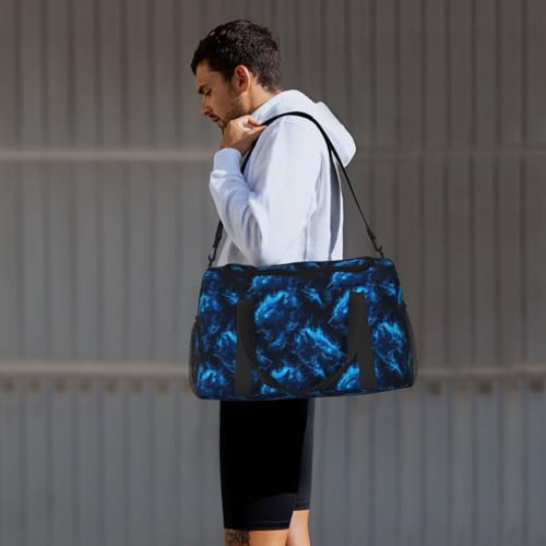 • Spacious and Practical Design: This Cool Blue Lightning Wolf Print duffle bag for men women measures 19.7x13x10.2 inches, providing ample storage for clothing, electronics, and daily essentials. The large main compartment with a double-zipper closure ensures hassle-no-cost organization for your travel or gym needs