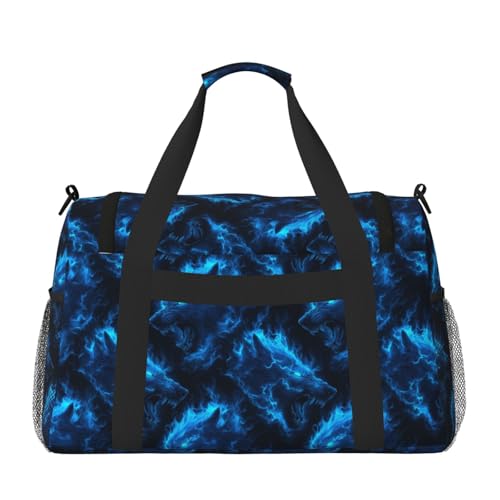 • Premium Material: Made from sturdy twill fabric with reinforced side straps, this Cool Blue Lightning Wolf Print duffle bag for travel combines functionality with a sleek, minimalist aesthetic. Its lightweight design ensures ease of use, while the high-quality materials offer a reliable solution for various occasions