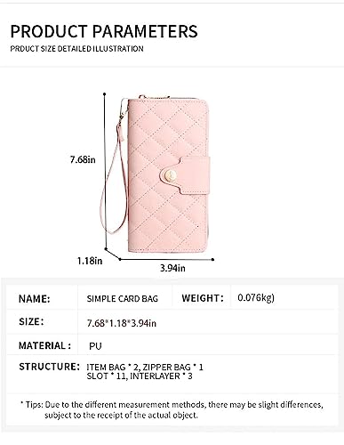 • Large Capacity: This women's wallet has 11 card slots, 1 zipper bag, 3 interlayer, 2 cash compartments, and a wrist strap. Plenty of space to carry our mobile phones, cash, coins, cards and receipts, ID cards, driving licenses, or family photos. It will be a huge size to hold your cards and other things you need to carry.