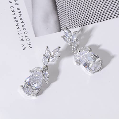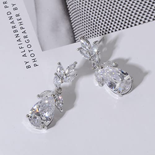 HOT ! Marquise Teardrop Cubic Zirconia Cluster Earrings for Wedding Sterling Silver CZ Crystal Rhinestone Bridal Jewelry for Bride Bridesmaids Women Girls Costume Jewelry Gift