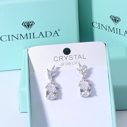 Marquise Teardrop Cubic Zirconia Cluster Earrings for Wedding Sterling Silver CZ Crystal Rhinestone Bridal Jewelry for Bride Bridesmaids Women Girls Costume Jewelry Gift 5