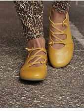 Highlights [Fabric] : Crafted from premium PU and synthetic leather, these flats are designed to provide a soft, breathable feel and superior durability for all-day comfort. [Silhouette] : These casual flats are lightweight and flexible, featuring a flat heel and round toe shape that promises ease in every step you take. The timeless design embodies a blend of modern and vintage styles. [Design Highlights] : The standout element of these shoes is their vibrant mustard yellow hue, complemented by adjustable crisscross laces that ensure a snug and customizable fit. The retro-inspired style adds a distinctive flair to your everyday wardrobe. [Occasions] : Perfect for daily wear and work settings, these shoes are versatile enough to enhance any casual ensemble, making them ideal for spring, summer, fall, and winter. [Size Range] : Available in a variety of sizes from US5.5 / EU35 / UK3.5 to US10.5 / EU42 / UK8.5, these shoes are designed to accommodate a wide range of foot sizes with a standard fit suggestion to select your usual size.
