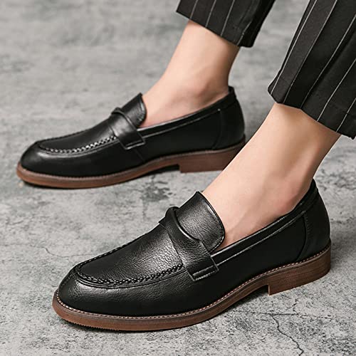 Men's Leather Penny Loafers Dress Shoes,Classic Comfort Slip On Stacked Oxford Soft Sole Business Casual Formal Derby 5