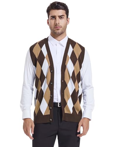 Beotyshow Mens Argyle Sweater Vests V Neck Sleeveless Cardigan Vest Knitwear 6