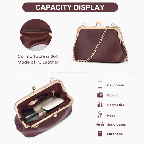More information about Mini Women's Kiss Lock Crossbody Bag PU Small Top Hand Handbags Kiss Clasp Crossbody Purses Evening Clutch