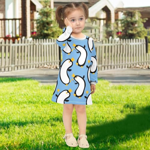 Birthday Penguin Girls Dresses Long Sleeve Sweatshirt Dress for Girls Winter Toddler Casual A Line Dresses Size 2-8T 2
