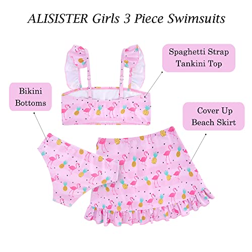 ALISISTER Girls Swimsuit 3 Piece Bathing Suits for 5-12 Years Hawaiian Bikini Set with Cover Ups Skirt 4