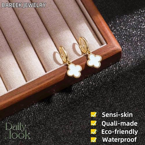 HOT ! Clover Earrings for Women Four Leaf Clover Dangle Earring 4 Clover Gold Hoop Hypoallergenic lightweight Lucky Mother Gifts Birthday Christmas Anniversary Simple Jewelry (Gold/White Clover Jewelry)