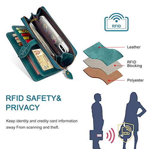 CONISY RFID Wallet Women Large Capacity, Long Leather Clutch Wallet Credit Card Holder for Women with Wristlet 5