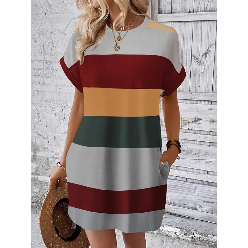 More information about Women's Mini Dress T Shirt Dress Tee Dress Shift Dress Casual Outdoor Daily Holiday Regular Fit Stripe Short Sleeve Crew Neck Pink Sky Blue Brown Green Summer