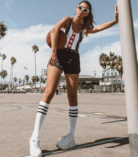 Women's Knee High Socks - Stripe Soft Cotton Thin Athletic Stocking Tube Socks 6