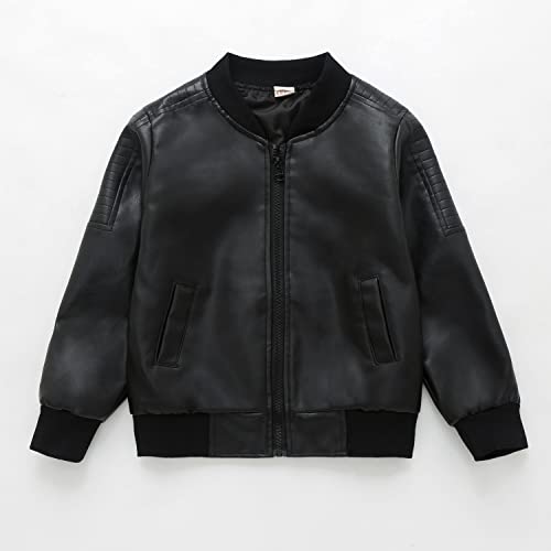 Boys' Outerwear Jackets,Kids Faux Leather Jacket, children's motorcycle Faux leather zipper coat 6