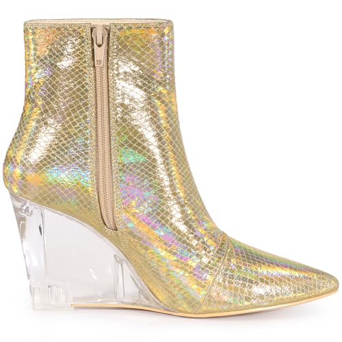 Why Choose Allegra K Women's Snakeskin Printed Ankle Boots Pointed Toe Wedge Clear Heels Boots?