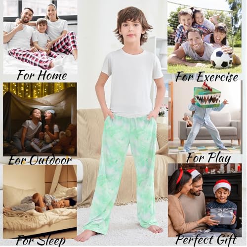visesunny Boys' Pants Green Pattern Jogger Pants Elastic Waist Long Bottoms Trousers with Pockets 6