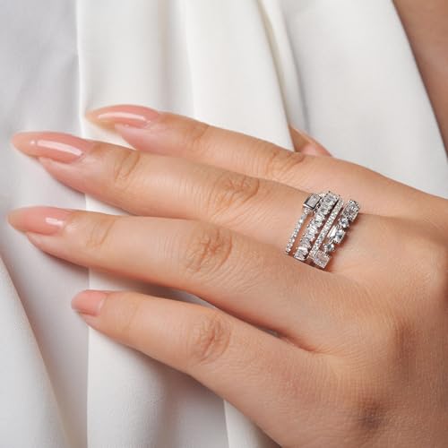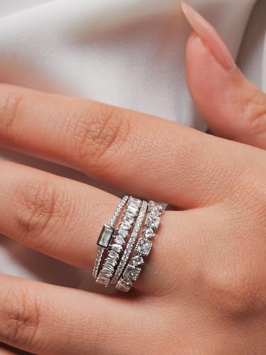 • 【AAA Cubic Zirconia】The gemstone material of this 925 sterling silver ring for women is AAA cubic zirconia. The rectangle or multiple cut gemstone and the stacking style accentuate the charm of the women's sterling silver ring. Transparent gemstones are of better quality and more noble, and our women's jewelry is also known for its dazzling luster and exquisite shapes.