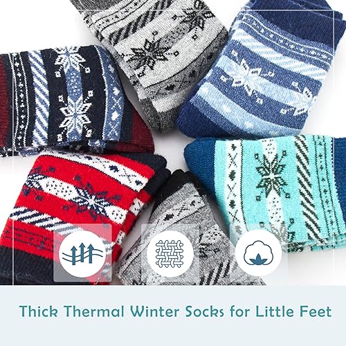 Moon Tree Boys Wool Socks Kids Winter cozy Crew Seamless Socks 6 Pack 8-10 Years