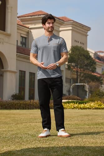 Lexiart Mens Casual Short Sleeve Henley Shirts Button Tee Shirts Basic Classic Shirt with Pocket 5