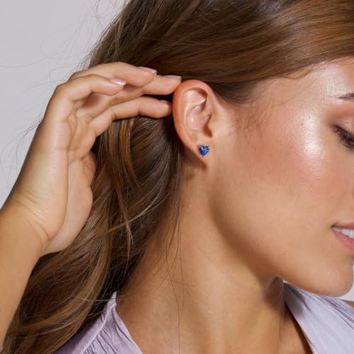 • MATERIAL: September birthstone stud earrings with 2 Heart Created Sapphire and 925 Sterling Silver basket; Lead no-cost and nickel, cushy for sensitive ears