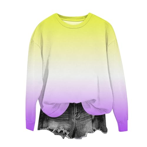 HOT ! Girls Fall Sweatshirts Preppy Gradient Crewneck Long Sleeve Sweatshirt Casual Loose Athletic Pullover Tops