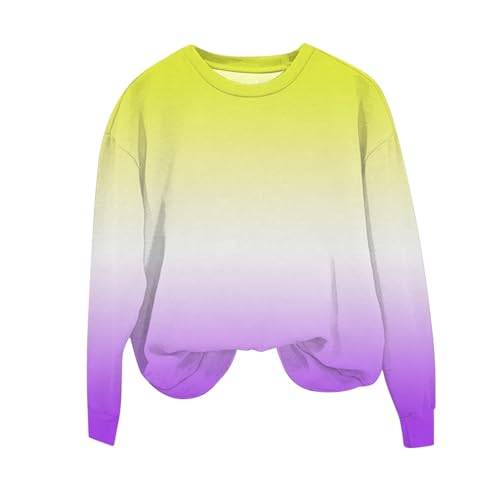 Girls Fall Sweatshirts Preppy Gradient Crewneck Long Sleeve Sweatshirt Casual Loose Athletic Pullover Tops