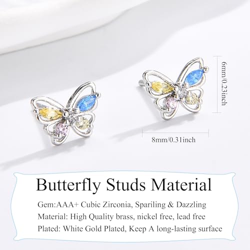 • Silver Earrings Material: Butterfly Stud earrings are made of hypoallergenic material, nickel free, lead free, suitable for sensitive ears. Adorned with sparkling cubic zirconia earrings, ideal for girls, kids, teen, teenage, little girls