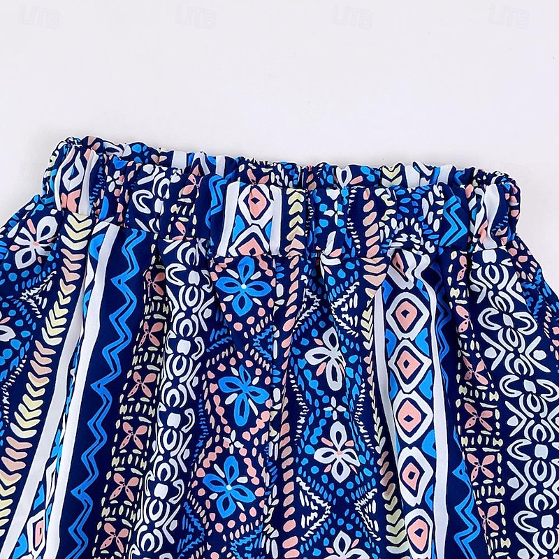 HOT ! Summer Girl Ethnic Set Lace Lace Lace Collar Sling Top Geometric Printed Wide Leg Pants Two Piece Set