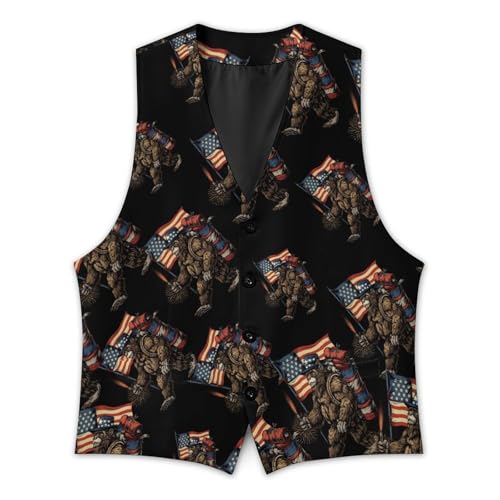 Camping Bigfoot U.S. Flag Novelty Men's Suit Vest Funny Formal Dress Vests Business Waistcoat 4