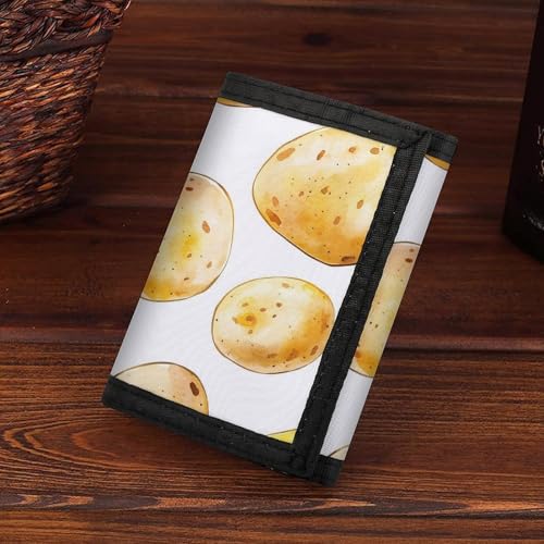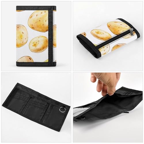 Hand-Drawn Potatoes Trifold Wallets for Men Women Ultra Thin Card Holder Purse with Zip Coin Pocket 7