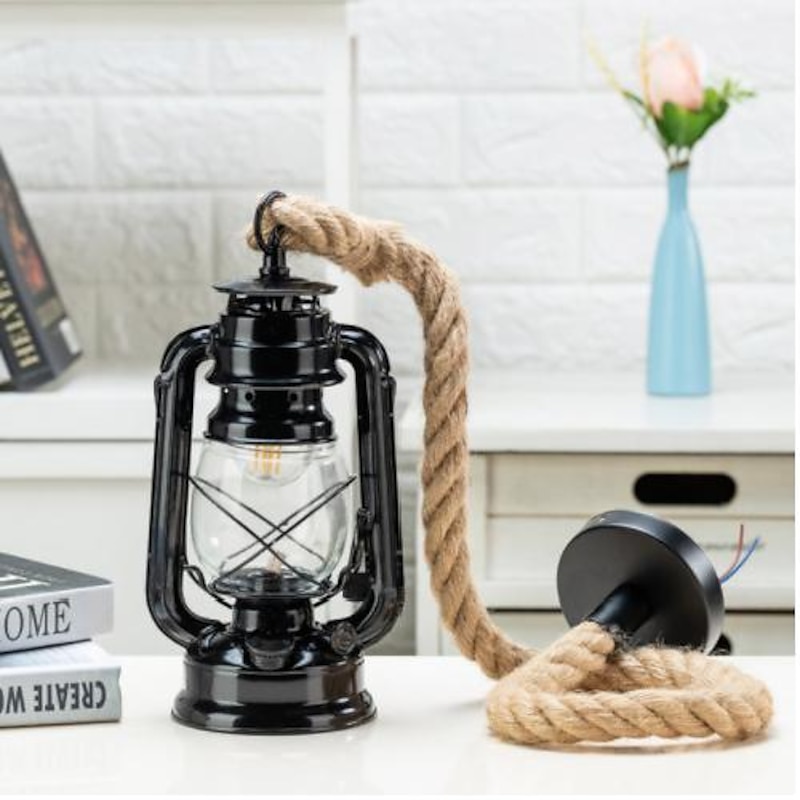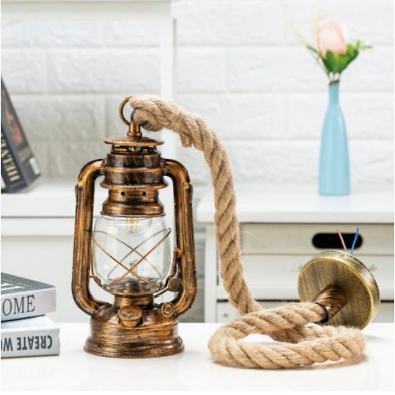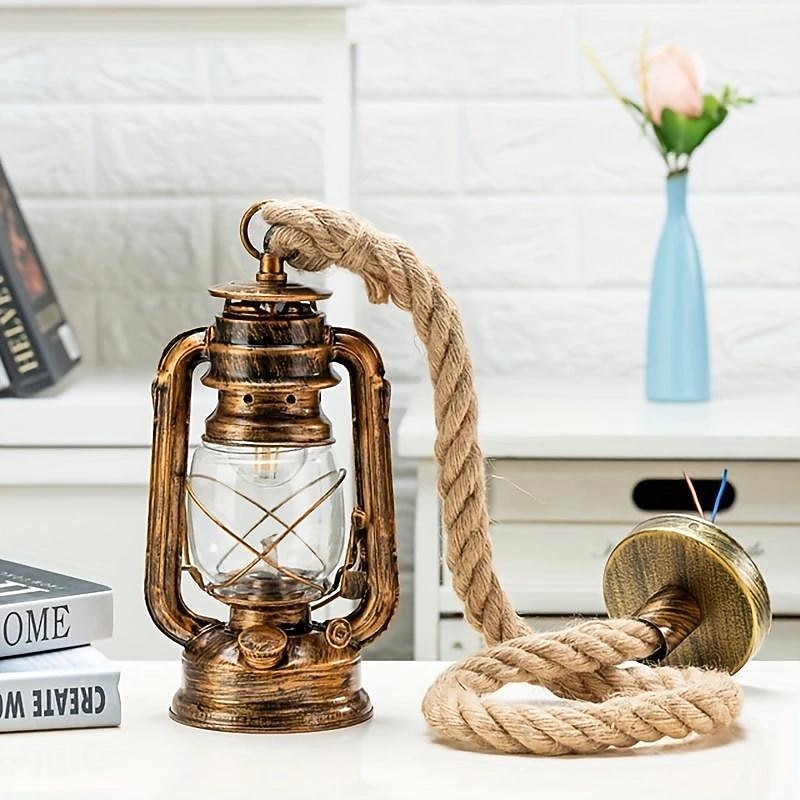 1pc Retro Hemp Rope Chandelier - Old Fashioned Lantern Pendant Light - Oil Rub Bronze Kitchen Island Hanging Light (Bulb Not Included) 19