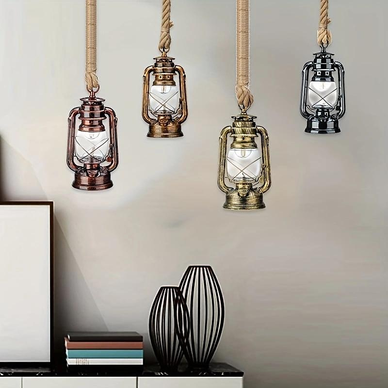 1pc Retro Hemp Rope Chandelier - Old Fashioned Lantern Pendant Light - Oil Rub Bronze Kitchen Island Hanging Light (Bulb Not Included) 1