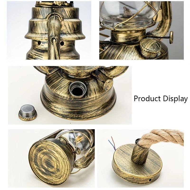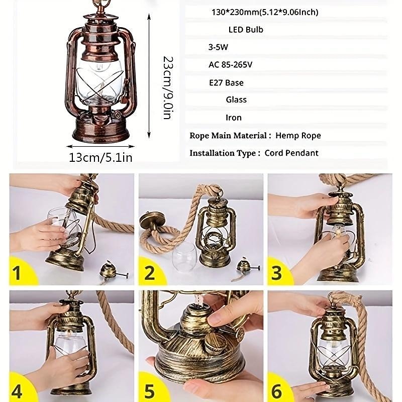 1pc Retro Hemp Rope Chandelier - Old Fashioned Lantern Pendant Light - Oil Rub Bronze Kitchen Island Hanging Light (Bulb Not Included) 9