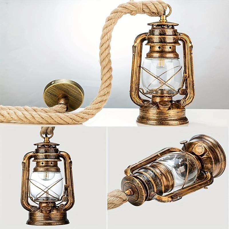 1pc Retro Hemp Rope Chandelier - Old Fashioned Lantern Pendant Light - Oil Rub Bronze Kitchen Island Hanging Light (Bulb Not Included) 7