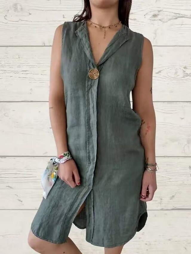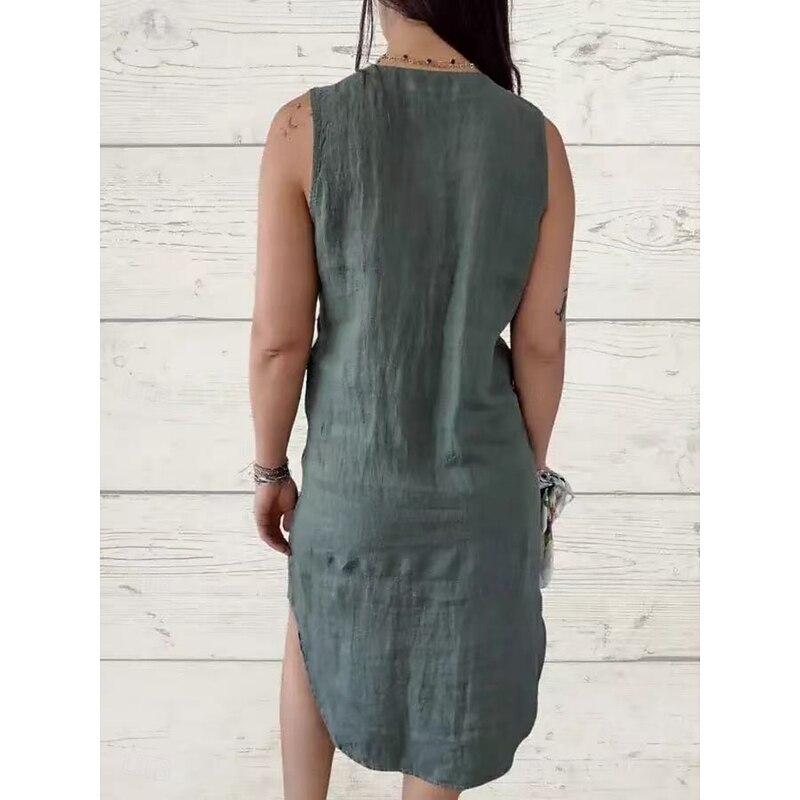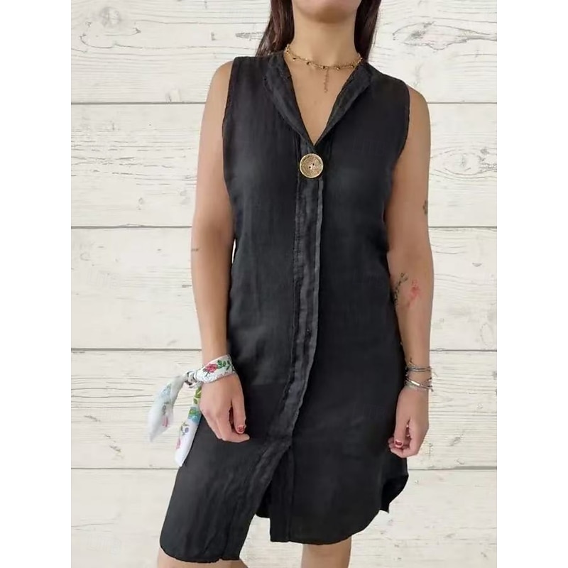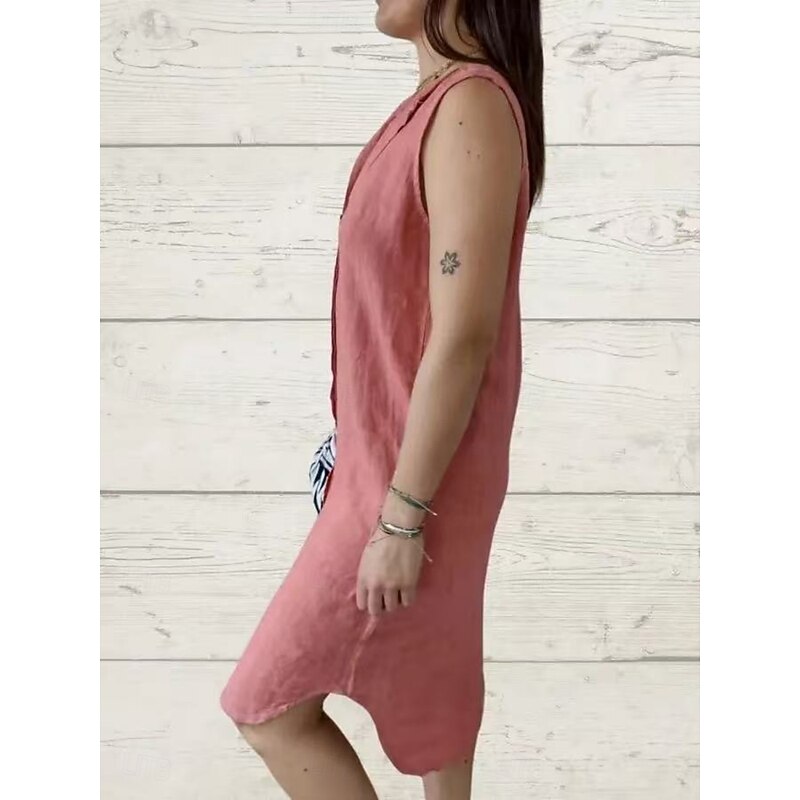 Women's Mini Dress Poly-Cotton Linen Texture Dresses Casual Dress Summer Dress Classic Modern Daily Weekend Regular Fit Plain Sleeveless V Neck Black Pink Green Summer 15