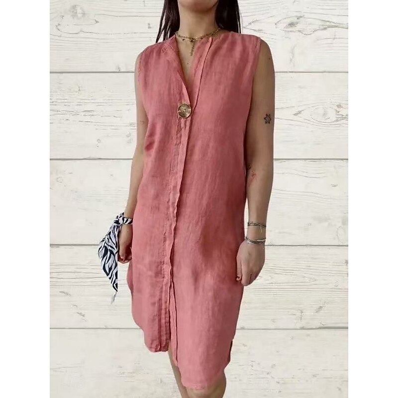 Women's Mini Dress Poly-Cotton Linen Texture Dresses Casual Dress Summer Dress Classic Modern Daily Weekend Regular Fit Plain Sleeveless V Neck Black Pink Green Summer 9