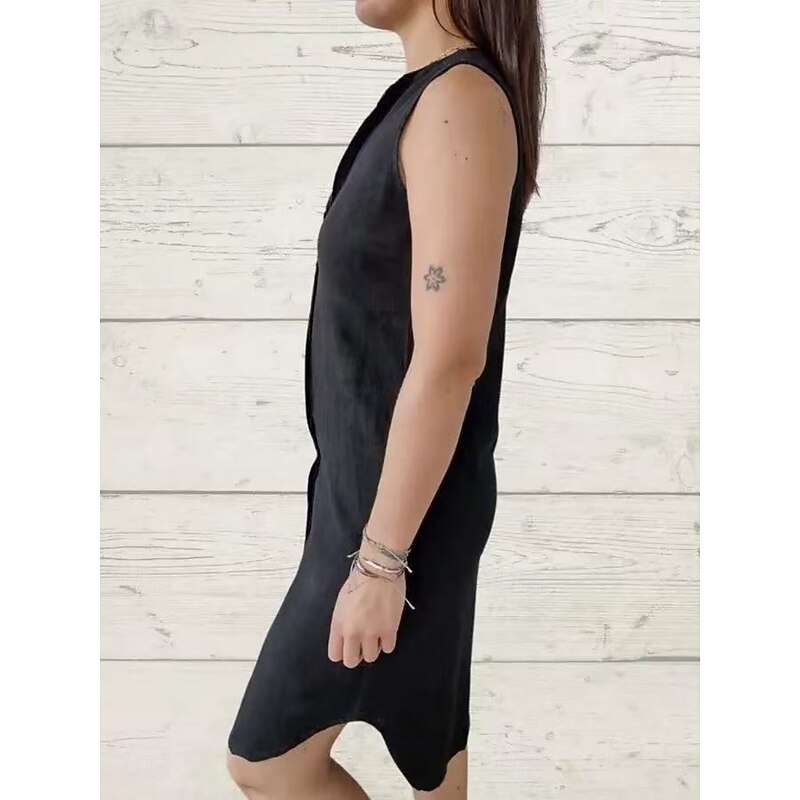 Highlights - Perfect for summer days - Sleeveless design for ultimate comfort - Classic and timeless style - Suitable for daily wear - Casual dress with button details - Elegant V-neckline - Mini dress length for a flattering look