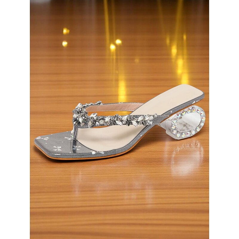 Highlights - Featuring upper materials made of sparkling glitter for a glamorous touch - Lining materials crafted from synthetic leather for a luxurious feel - Square toe shape for a classic and sophisticated look - Open toe design for added breathability and style - Durable rubber outsole for long-lasting wear and superior grip