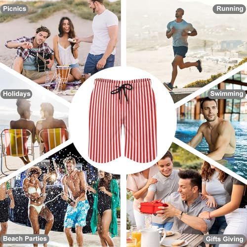 • Applicable Occasions: Perfect for both leisure and athletic activities, these Red And White Stripes Print swim shorts are suitable for home wear, swimming, beach vacations, running, and more, offering versatility in mens swimsuit options