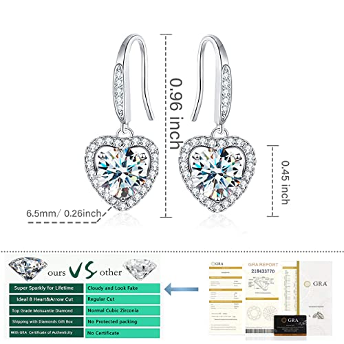 2CT Moissanite Earrings 18K White Gold Plated D Color Top Grade Cut Diamond With GRA Certification 925 Sterling Silver Ideal Gift for Women Valentines, Mothers Day, Christmas, and Birthdays 6