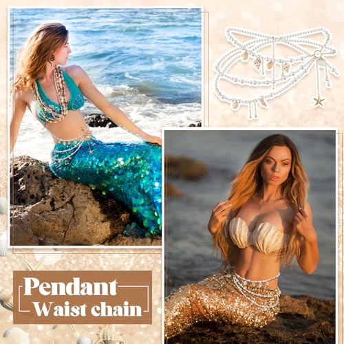 Tondiamo Pearl Belly Chain Layered Waist Body Chains Mermaid Beach Conch Starfish Bikini Belly Jewelry Fashion Beach Rave Party Club Body Accessories Jewelry for Women, 29.5-37.4 In 6