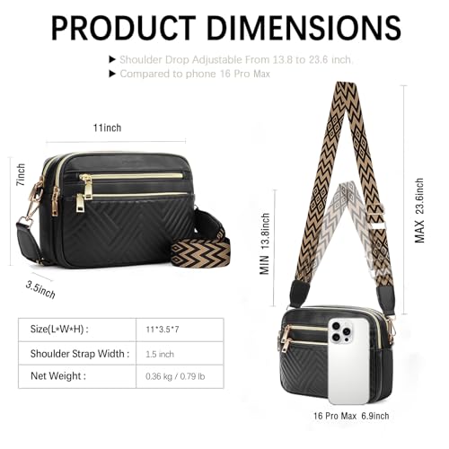 • 𝗠𝘂𝗹𝘁𝗶 𝗙𝘂𝗻𝗰𝘁𝗶𝗼𝗻𝗮𝗹 𝗣𝗼𝗰𝗸𝗲𝘁: This Crossbody quilted purse equipped with 5 zipper pockets, including 2 front zipper pocket, 2 main zipper pockets with an inner zipper pocket and 4 card slots, and 1 back zipper pocket. It can easily store your daily necessities for work/outdoor/short travel, such as wallet, cards, perfume, passport, cosmetics, sunglasses, keys, etc.