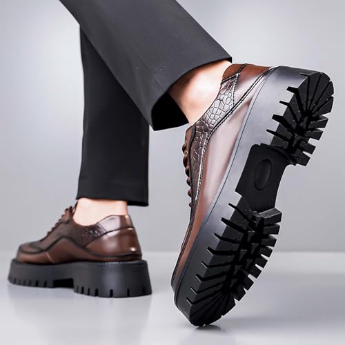 Men's Platform Oxfords Classic Lace-up Business Casual Office Formal Shoes Non-Slip Comfortable Wedding Prom Uniform Loafers Urban Style 6