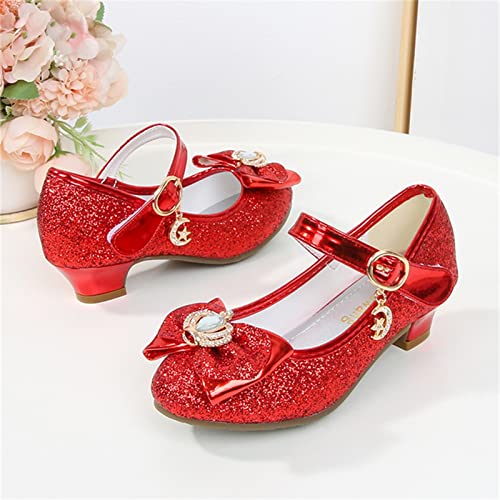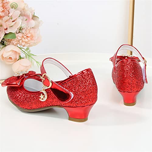 OMEARK Girls Toddler/Little Kid Dress Pumps Low Heels Party Show Dance Shoes Sparkly Glitter Sequins Princess Bow Wedding Dress Up Shoes Rhinestone Sandals 6