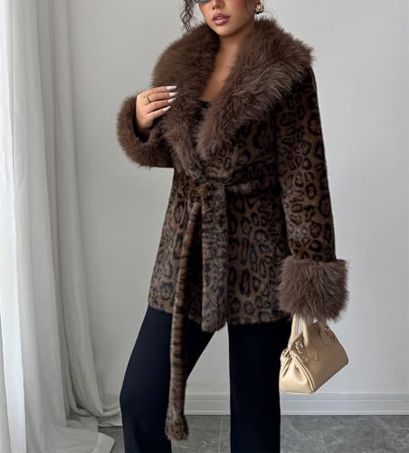 More information about Women's Leopard Print Fluffy Faux Fur Coat Winter Shaggy Open Front Casual Oversized Lapel Jacket Warm Outerwear