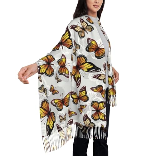Monarch Butterfly Pattern Womens Scarf Cashmere Shawl Winter Warm Long Tassel Soft Scarf Luxurious Classic Scarves Shawls Wraps 28.3" × 77.6" 2