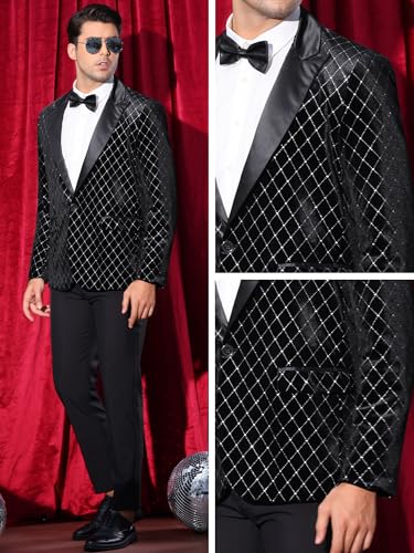 HOT ! Lars Amadeus Velvet Blazers for Men's Velour Tuxedo Peak Lapel Argyle Plaid Sparkly Shiny Suit Jacket