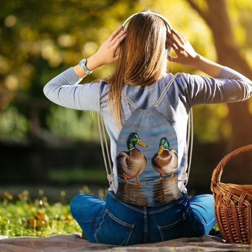 HOT ! Two Mallard Ducks Drawstring Backpack - Canvas Sports Gym Sackpack, Lightweight String Bag for Beach & Travel
