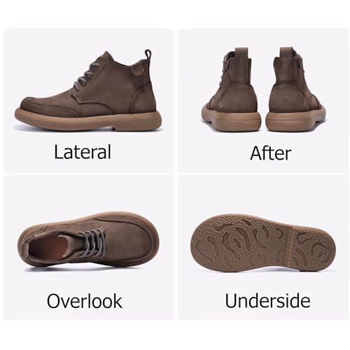 Mens Lace Up Casual Fashion Ankle Boots, Soft Genuine Leather Comfortable Durable Breathable Chelsea Western Boots, Round Toe Non-Slip Retro Stylich Walking Shoes, Vintage Work Shoe 5