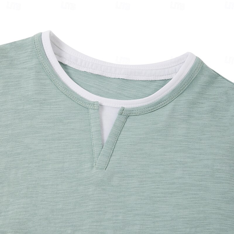 100% Cotton Men's T-Shirt V Neck Tee Long Sleeve Shirt Solid Color V Neck Outdoor Street Long Sleeve Fake two piece Cotton Tee Daily Casual Street Style 6