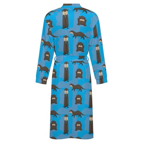 Otters Pattern Pajama Bathrobe SleepwearKnee Funny Shawl Gift for Men 4
