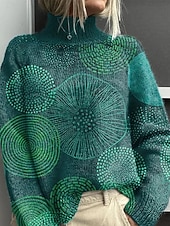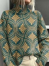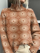 More information about Women's Pullover Vacation Daily Geometric Color Block Ribbed Turtleneck Print Long Sleeve Regular Tops Knit Outdoor Daily Holiday Blue Brown Fall Winter